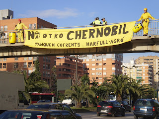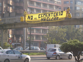 Els escaladors s’han situat en les zones d’entrada i eixida de la ciutat de València per a recordar el començament del compte arrere del final de Cofrents (2011), mostrant en les seues pancartes missatges com: “No un altre Txernòbil”, “No al Cementeri Nuclear”, “Tanquem Cofrents”. A més, porten huit bidons que simulen les 7000 tones de residus radioactius d’alta intensitat de les centrals nuclears espanyoles, que viatjaran per tota la Comunitat Valenciana si se situa l'ATC a Zarra.